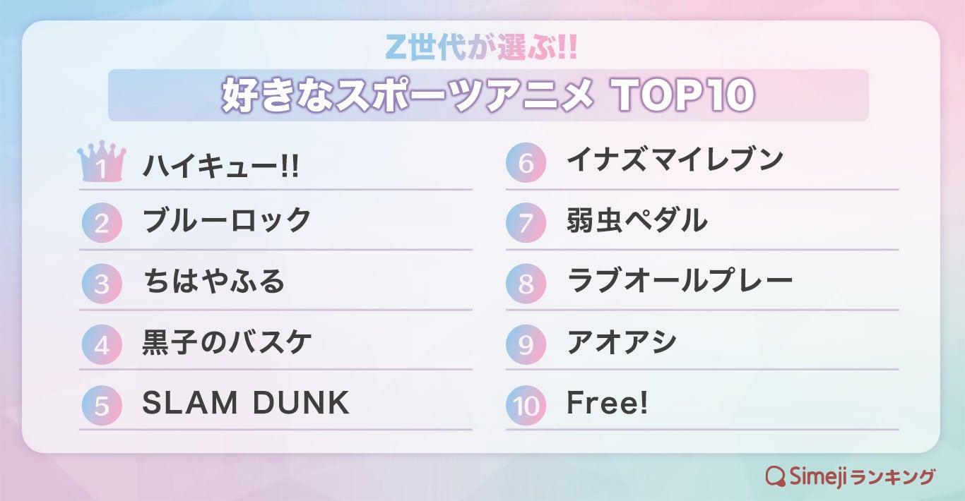 【Simejiランキング】Z世代が選ぶ!!「好きなスポーツアニメTOP10」