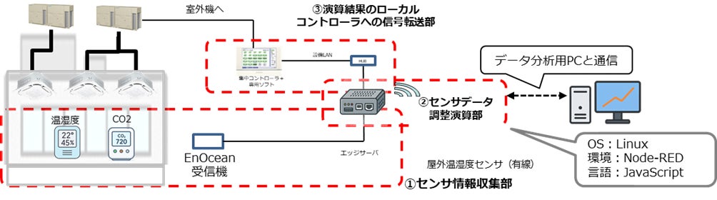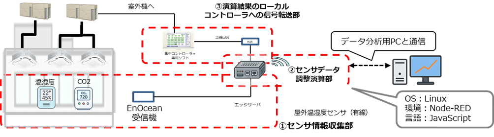 ※3:エッジサーバ: LINUX OSの制御用ボックスPC。室内環境と空調情報をもとに各機能の演算を実行。