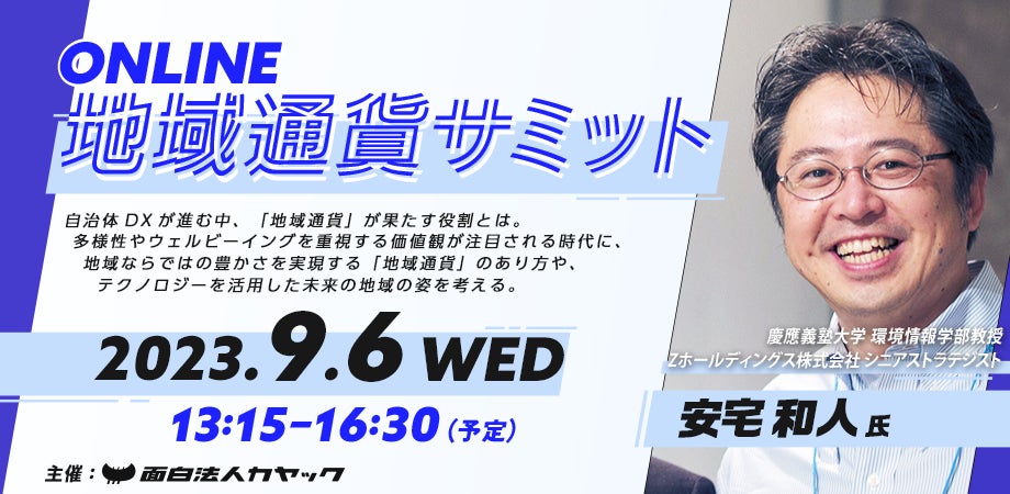 安宅 和人氏らが登壇「第3回 地域通貨サミット」9月6日(水)開催