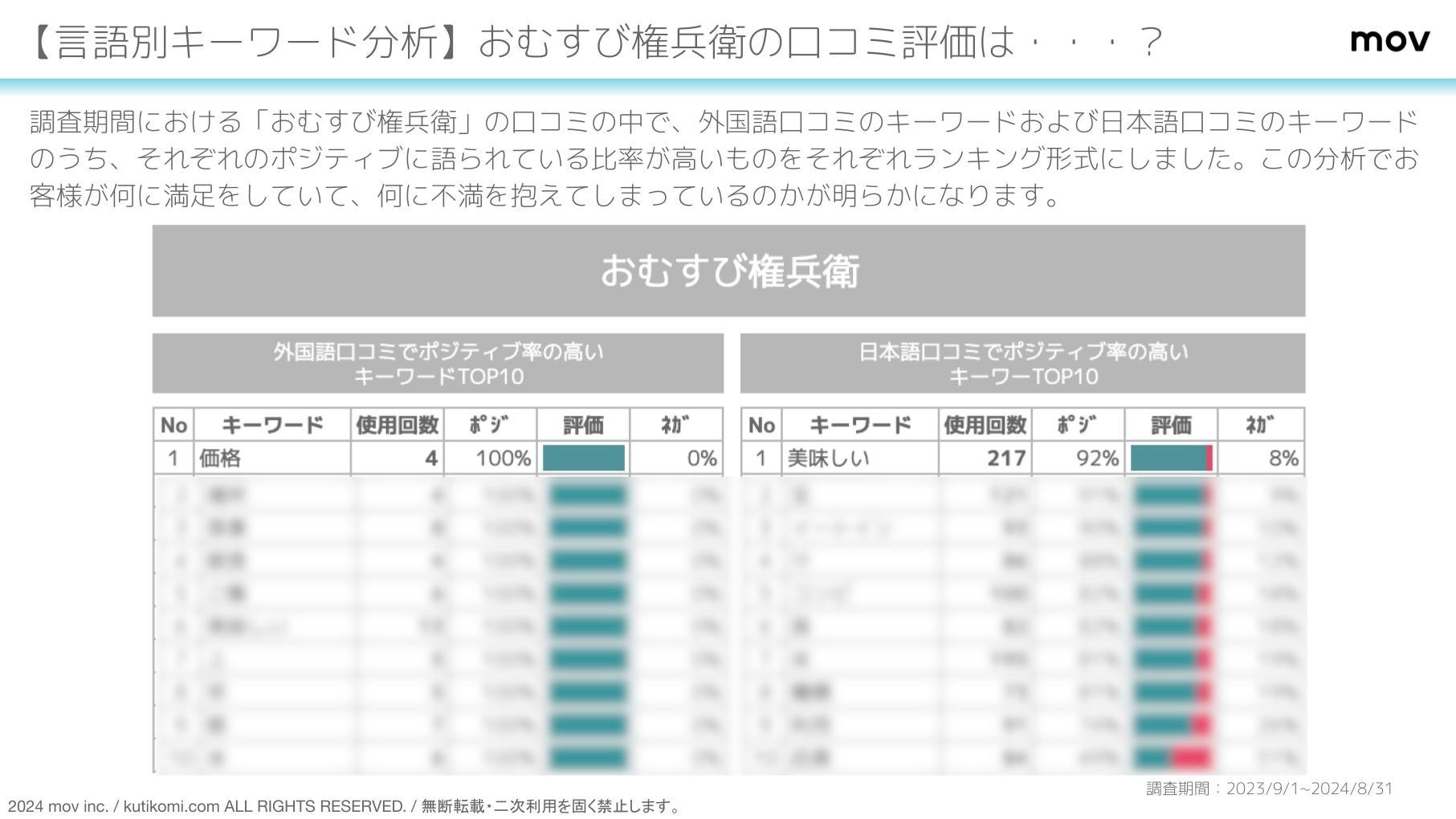 ■【言語別キーワード分析】おむすび権兵衛の口コミ評価は・・・?
