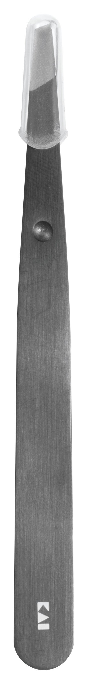 本体内側の凸構造が過度な力を防ぎ、先端の開きを防止します。先端がしっかり閉じるので、狙った毛を逃しづらく、がっちりとつかむことができます。また、先端は毛をつかみやすい斜め形状なのもポイントです。