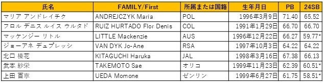 前回大会は、北口が最終試技で逆転優勝。今年も、東京オリンピック銀メダリストのマリア アンドレイチク(ポーランド)、パリオリンピック銀メダリストのジョアネ ファンダイク(南アフリカ)、ブダペスト世界選手権銀メダリストのフロル デニス ルイス ウルタド(コロンビア)に銅メダリストのマッケンジー リトル(オーストラリア)と、オリンピックメダリストやブダペスト世界選手権金銀銅が集結し、夢の頂上決戦が実現します。