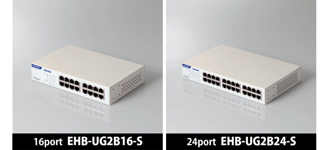 ▲ 16ポートモデル正面 画像“EHB-UG2B16-S”(左)