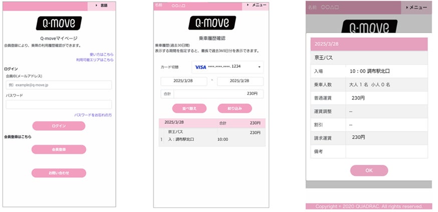 QUADRACのQ-moveサイトにアクセスし、「マイページ」の会員登録手続きが完了しますと確認可能です。