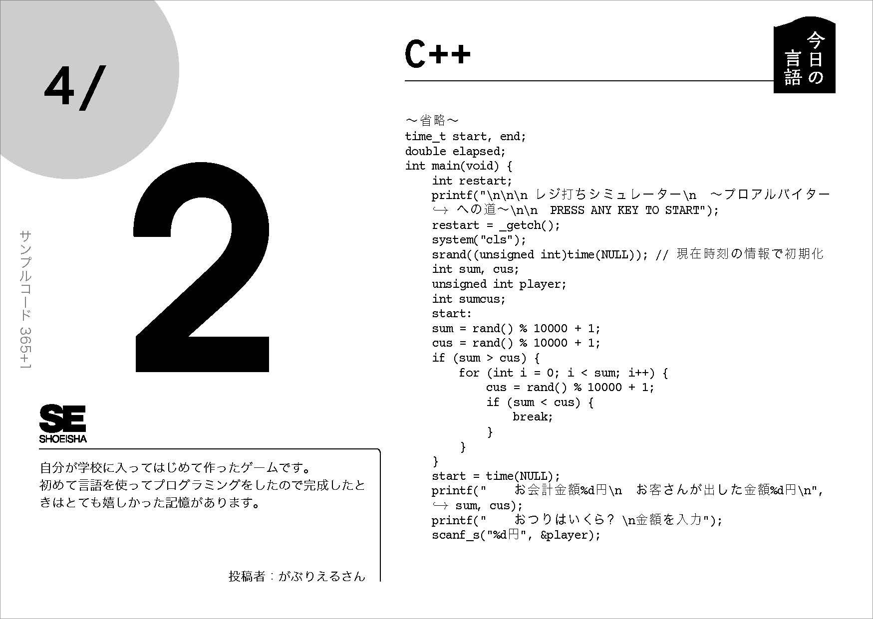 めくるたび、違うコードに出会える、エンジニアのための日めくりカレンダー『サンプルコード365+1』2/24発売