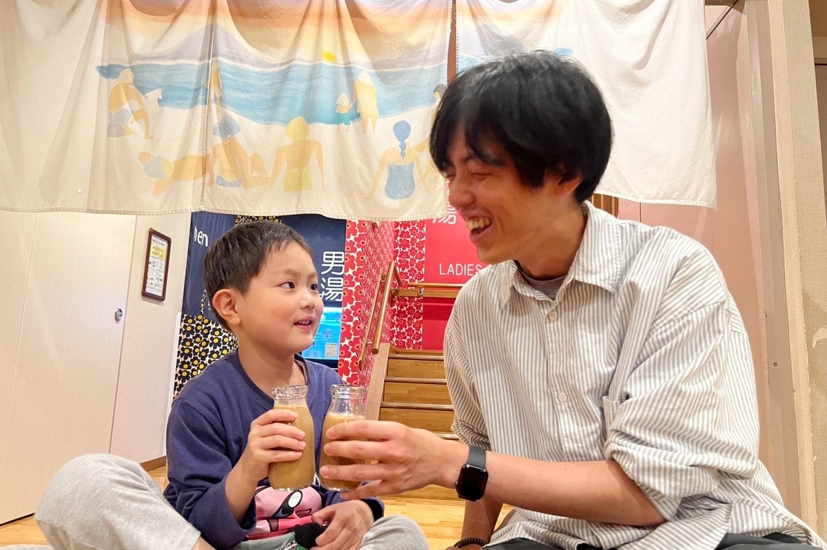 湯あがりのコーヒー牛乳を、親子水入らずで。