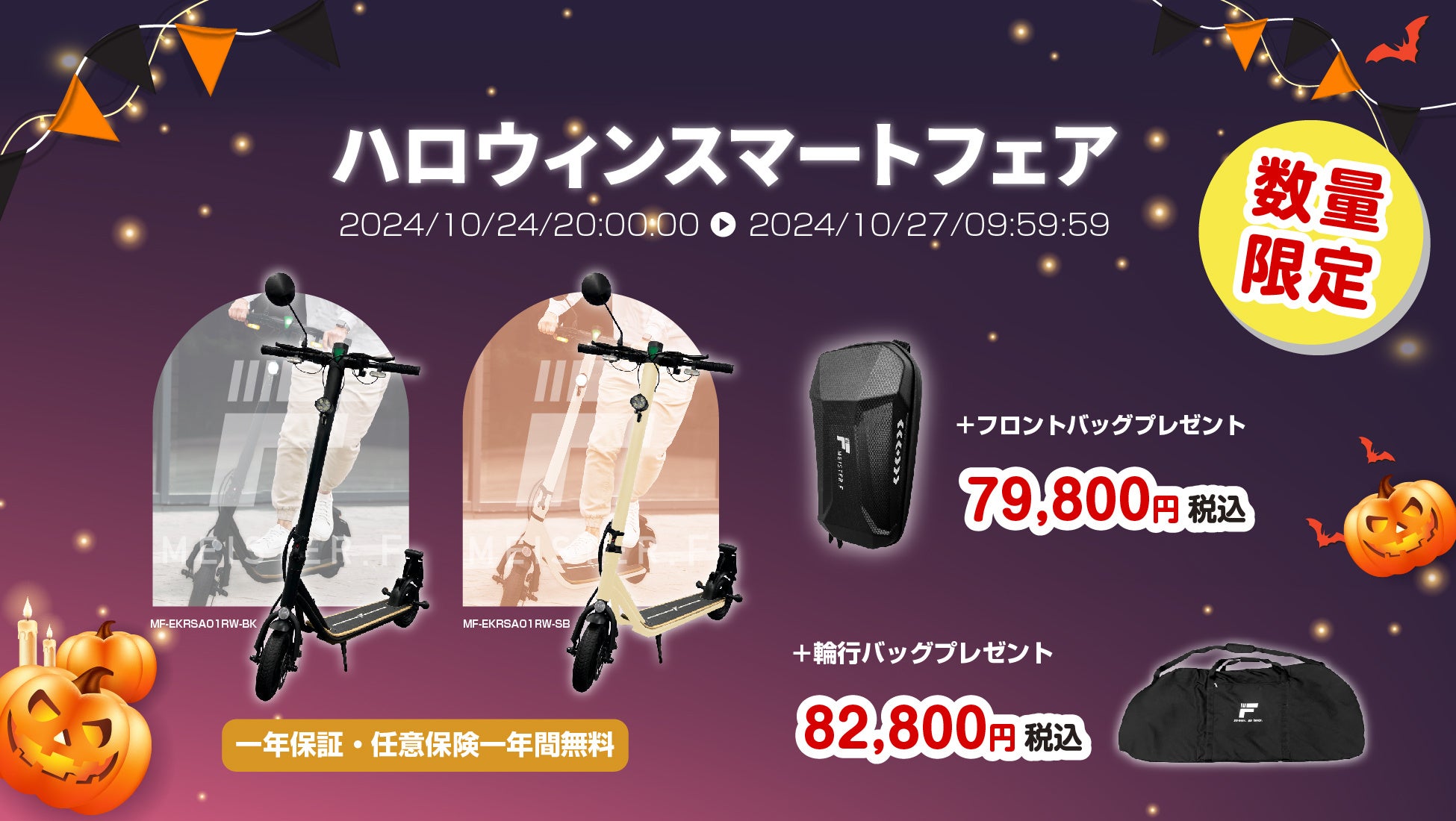 楽天『Show !t』ハロウィンスマートフェア開催中。この秋、特定小型電動キックボードを特別価格でゲットしませんか?初心者にもおすすめのブランドで、フロントバッグは無料、輪行バッグも格安で手に入るチャンス。さらに、1年間の任意保険無料キャンペーンも継続中です。今回はスペシャルセット販売も実施。お得なキャンペーンをぜひご活用ください!