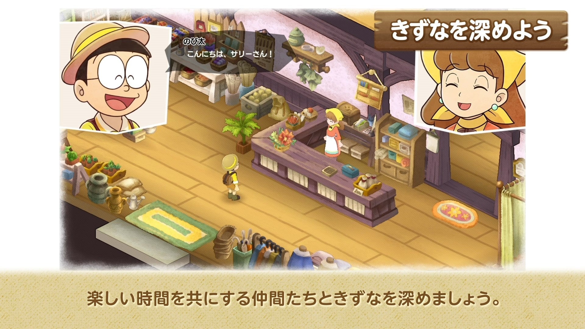 癒される場所がある。みんなの家がある―、すべての人の心に響く、ハートフルなほのぼの生活。あの絵本の中のような世界が、自然光、風、環境音などリアルな表現を追加することで、より美しくなりました。「牧場物語」シリーズならではの遊びはもちろん、「ドラえもん」らしいひみつ道具を用いた楽しい遊びが盛りだくさん!今作からの新しい遊びや要素もたくさん加わり、完全新作の心温まるストーリーをお届けします。さあ、のび太たちと新しい牧場生活を始めてみませんか?