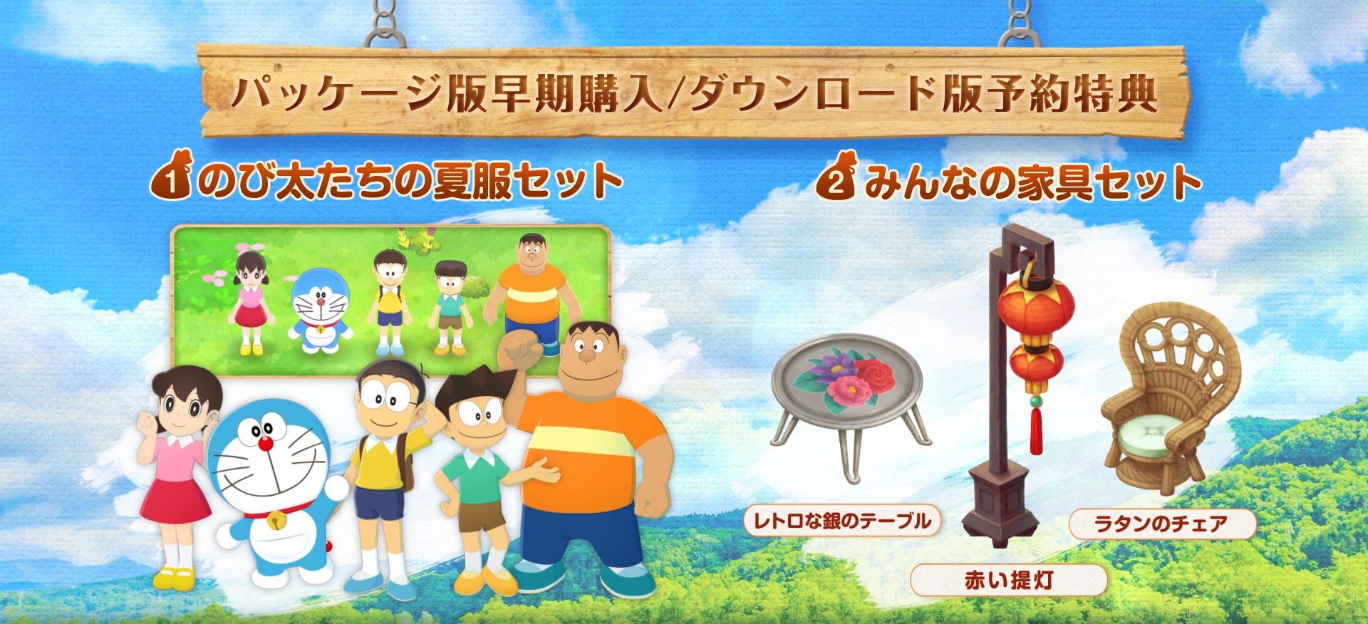 ・DLC衣装・家具・ミニシナリオパック1:のび太たち5人分の衣装、家具8種、ミニシナリオの収録を予定