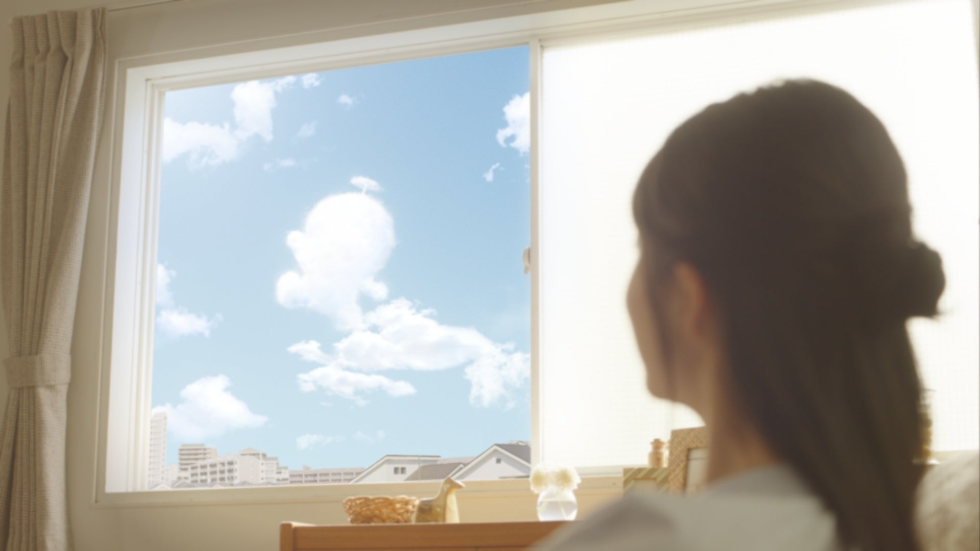 笑顔でリモート会議を終えた志田さん。一息ついて窓の外を見ると、空にはドラえもんの形のように見える雲が…!まるで彼女を呼んでいるような雲に誘われて、牧場生活にほっと癒される様子が描かれています。見ればドラえもんやのび太たちに、ふと会いに行きたくなるはず。是非ご覧ください!