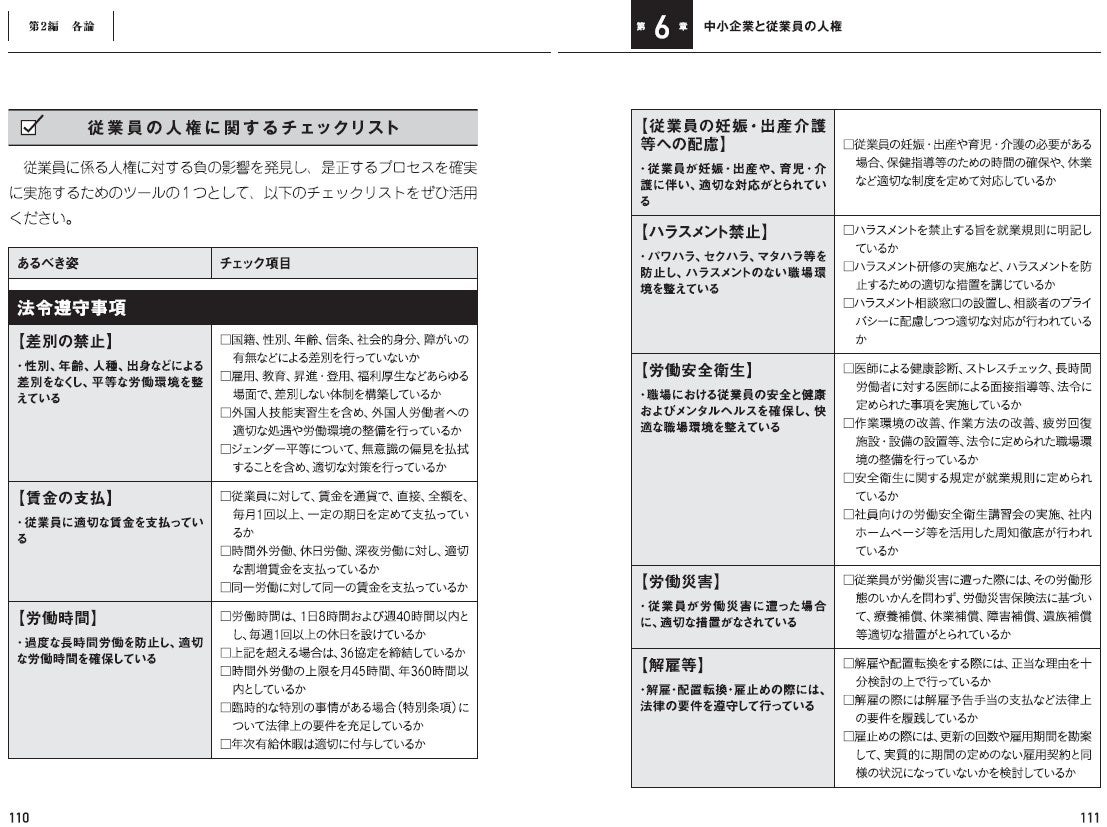 中小企業の課題に照らした「ビジネスと人権」への対応に関するチェックリストで自社の実施状況や対処ポイントが確認できる!