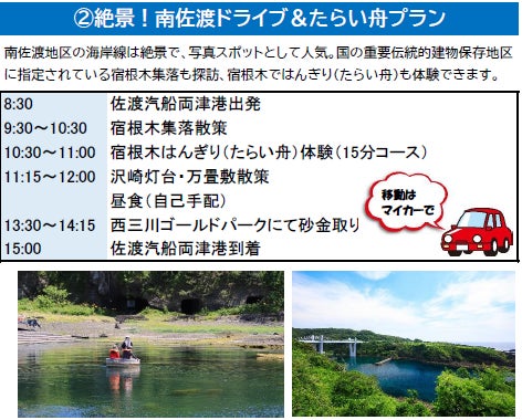 2つのコースから、いずれかひとつお選びいただきマイカーで周遊する佐渡島観光付き!