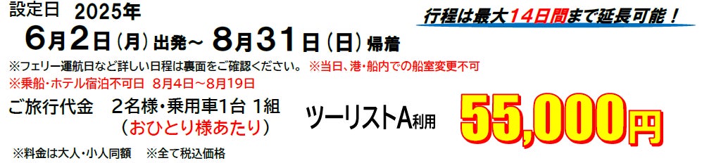 【新日本海フェリー就航55周年特別企画】佐渡・新潟ドライブパック4日間