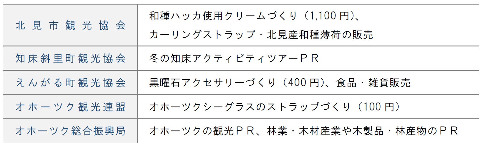 町、滝上町、興部町、雄武町、大空町)から事業者・団体が出店し、特産品を販売します。