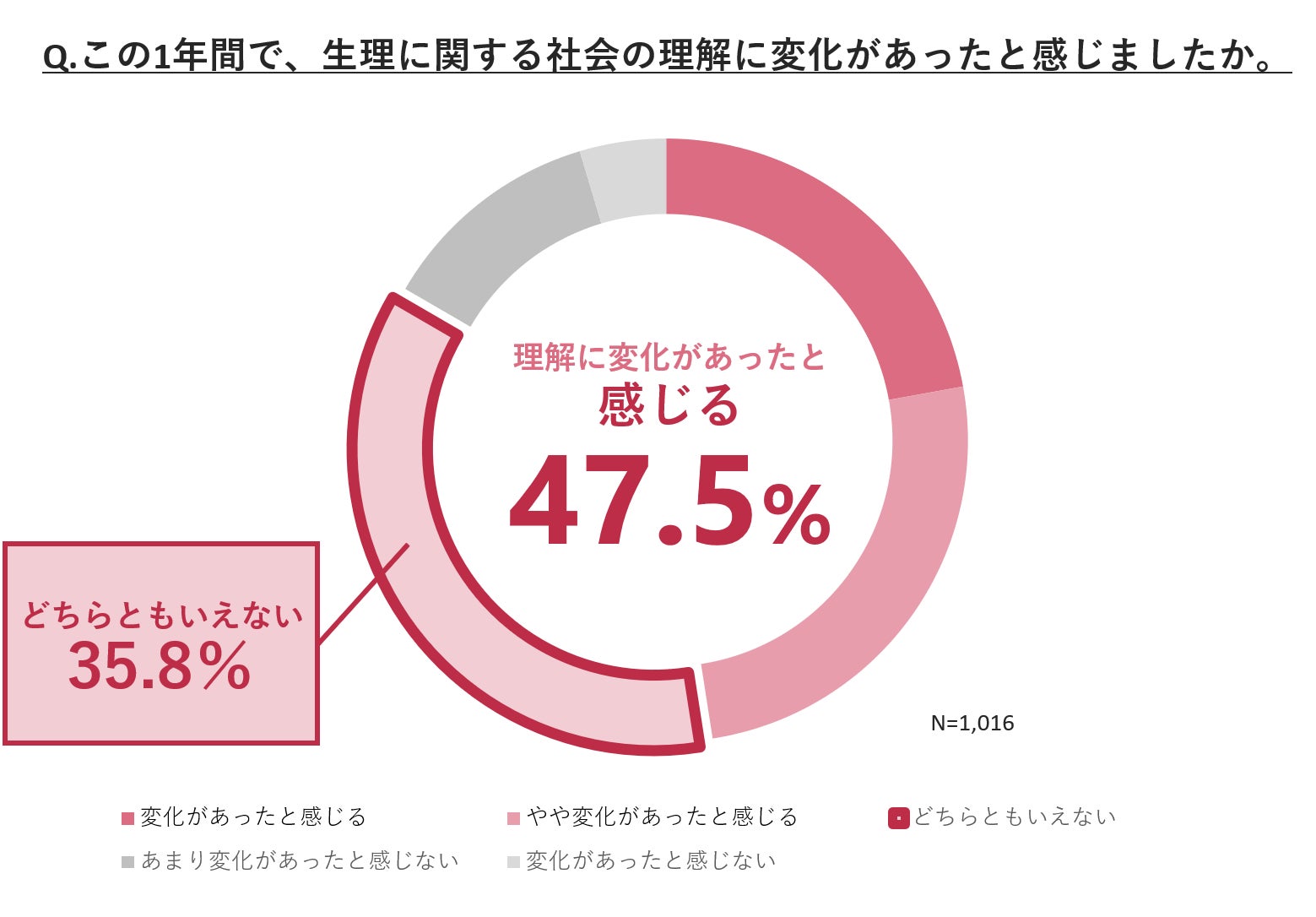 ➁生理に関する社会の理解は「どちらともいえない」が最多
