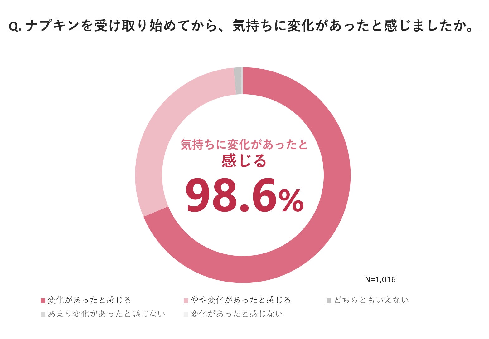 1年間の奨学生期間を終え、「奨学ナプキン」でナプキンを受け取り始めてから、98.6%と多くの奨学生の方が「気持ちに変化があった」と回答。