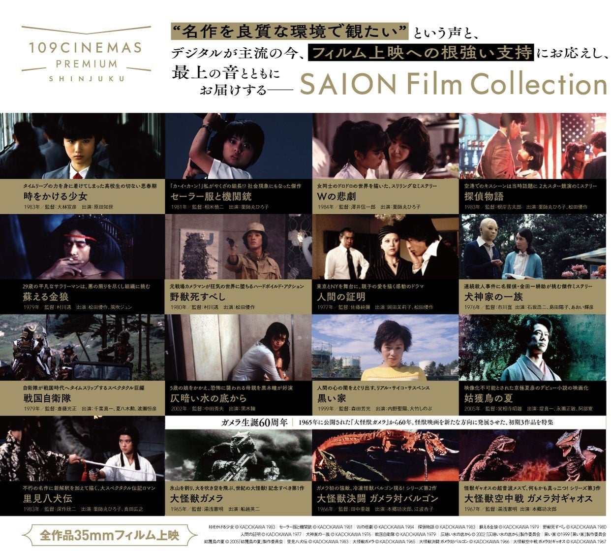 【109シネマズプレミアム新宿】KADOKAWAの貴重なフィルムプリントを活用し全16作品を上映 「SAION Film Collection」実施決定!
