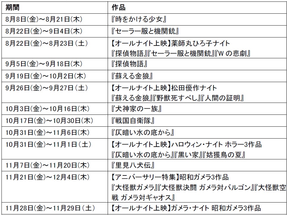 薬師丸ひろ子・松田優作主演作品のオールナイト上映も2025年8月8日(金)~12月4日(木)で開催