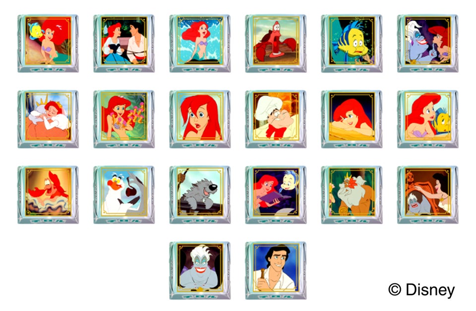 主人公「アリエル」の赤い髪をイメージしたストロベリーソースと、泡のような口溶けのマシュマロを、ほんのりしょっぱいソルティチョコで包みました。
