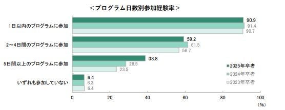 ※「インターンシップ(就業体験を伴う複数日程のプログラム)」に限定せず、1日以内のプログラムも含めて調査