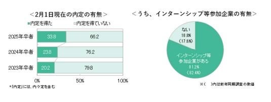 ○「内定を得た」33.8%で、前年同期(23.8%)を10ポイント上回る