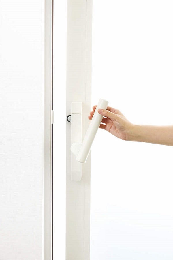 ハンドル直径のサイズや引手の指のかかり方を考慮し、子どもからお年寄りまで使いやすいユニバーサルデザインに配慮。最も力が必要な窓の動かし始めに、戸先側にサポート部品がせり出し、「てこの原理」で窓を押し出すことで初動を補う仕組みで、窓の開閉操作に必要な力の45~50%を低減。これまでは新築を建てる際にオプション部品として選択できる仕様でしたが、既設の窓(樹脂窓「APW 331」「APW 431」)に後付けもできるようになりました。