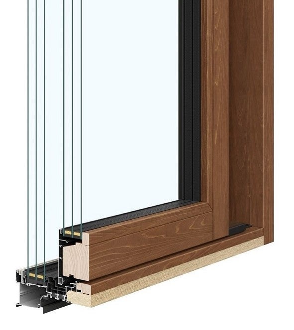 国産桧を使用した上質感のある意匠性とトリプルガラス仕様による高い断熱性能を兼ね備えた木製窓です。耐風圧性S-5 等級・水密性W-5 等級を有し戸建木造住宅だけでなく集合住宅などの非木造建築物にも対応可能。室内側は国産桧の集成材・室外側をアルミで被覆したアルミクラッド構造とし雨や日射による腐朽や色褪せを防ぎ、メンテナンス性にも配慮しています。