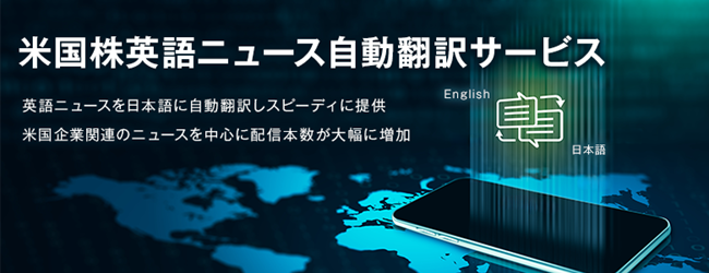 このたびの米国株英語ニュース自動翻訳サービスの提供開始により、英語版ニュース配信後、わずか数秒で米国個別株のニュースが日本語で確認できるようになり、ニュースの配信数も1日に約300件増加する見込みです。