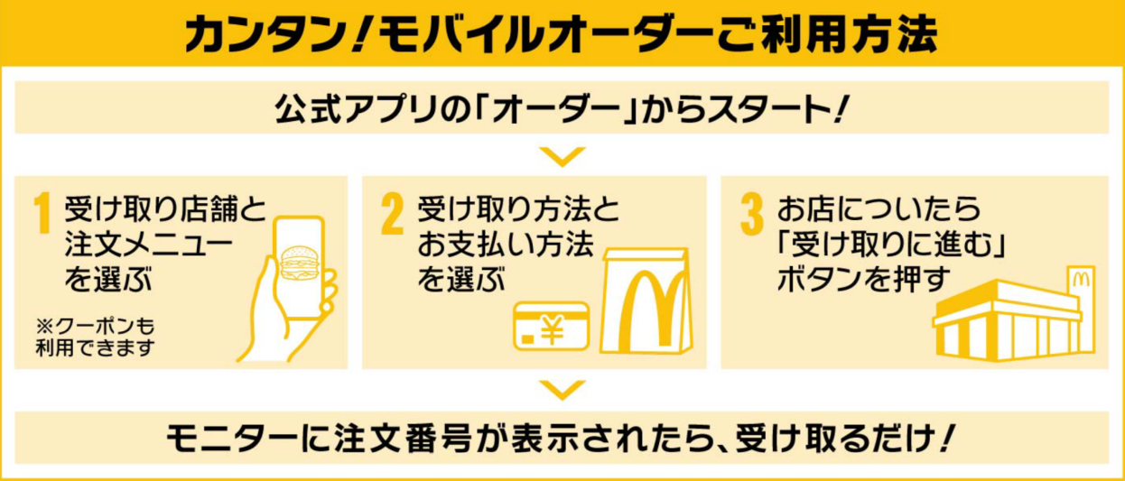 | 対象店舗 | マクドナルドのモバイルオーダー対象全店舗 ※対象店舗はマクドナルド公式サイト(https://map.mcdonalds.co.jp/?f=11)をご確認ください ※マックデリバリー🄬および第三者が提供するデリバリーサービスを利用した取引はキャンペーンの対象外です |