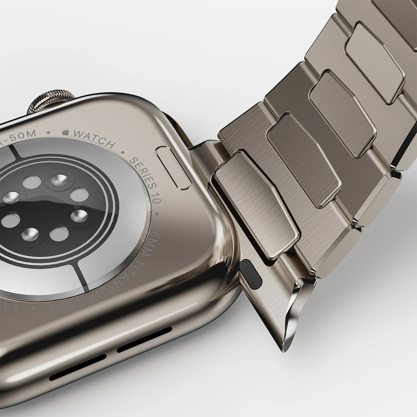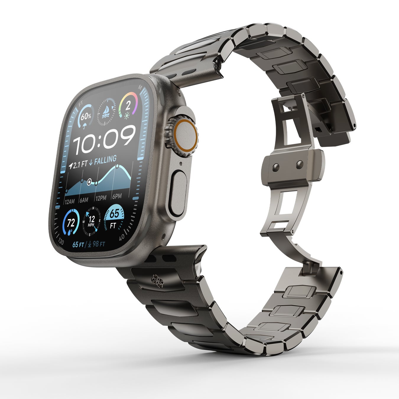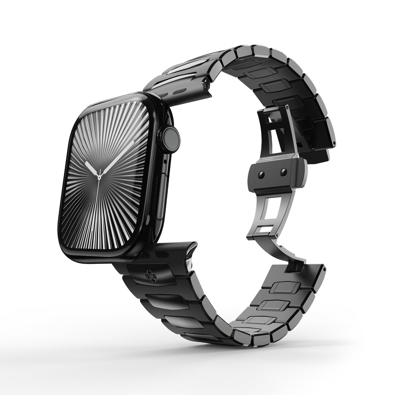 「ROYAL II STRAP」は、これまでのように専用工具を使ってピンやリンクを外す手間を完全に排除しました。リンクをワンタッチで簡単に着脱ができるこの新機能により、自分好みのサイズ感に手軽に調整が可能。誰でもスムーズに、ストレスなく、理想的なフィット感を実現できます。日常の手間を大幅に削減し、快適さと利便性を追求したこのストラップは、Apple Watchをさらに魅力的で使いやすいアイテムへと進化させます。