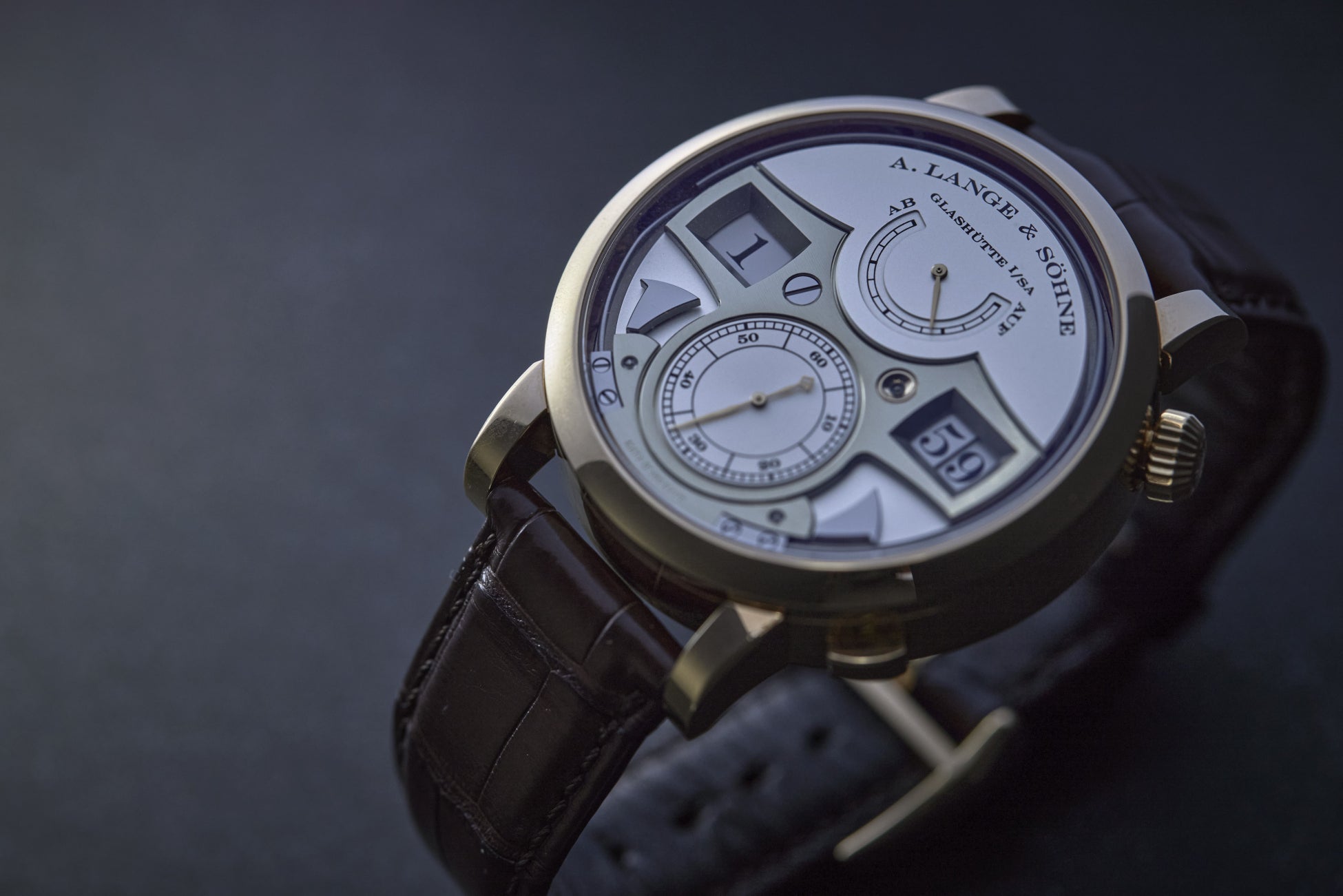 ドイツを代表するランゲ&ゾーネによる複雑機構のうちの一本。機械式時計でありながらデジタル式(瞬転数字式時刻表示)を採用し、文字盤側にハンマー打ち機構が取り付けられた世界初の機構を搭載したモデル。文字盤上に設置された右のハンマーが15分ごとにゴングを鳴らし、透き通った高い音を奏で、毎正時には左のハンマーが力強く低い音を響かせる。自社製ムーブメントCal.L043.2を搭載。