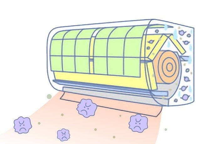 エアコンを使った後には、冷房使用中に結露した水分がエアコン内部にたまっており、湿気がたっぷりな状況で、カビの成長に適した環境になってしまいます。