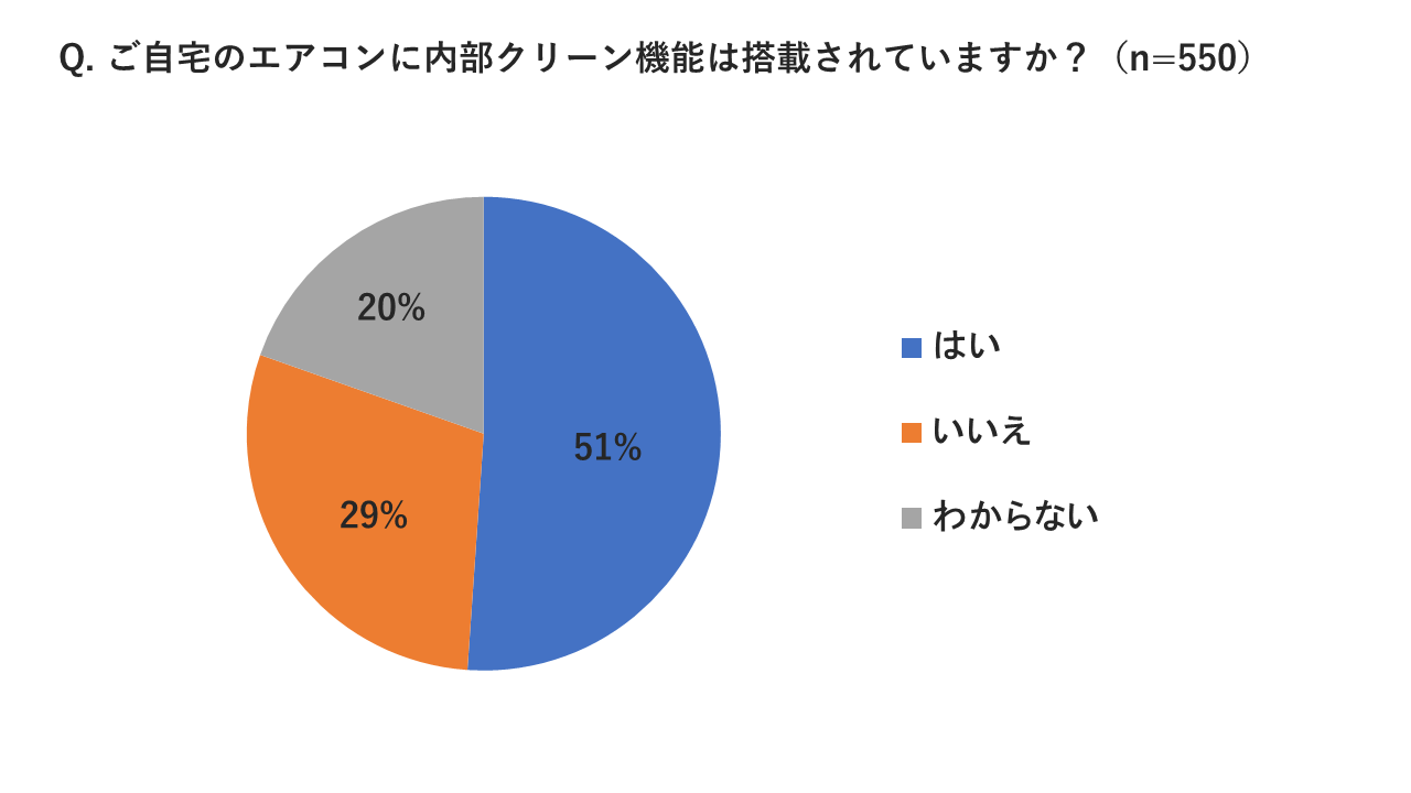 さらに、「ご自宅のエアコンに内部クリーン機能は搭載されていますか?」という質問では、2割の方が「わからない」と回答しており、せっかく搭載されていても活用されないままになっているケースが懸念されます。
