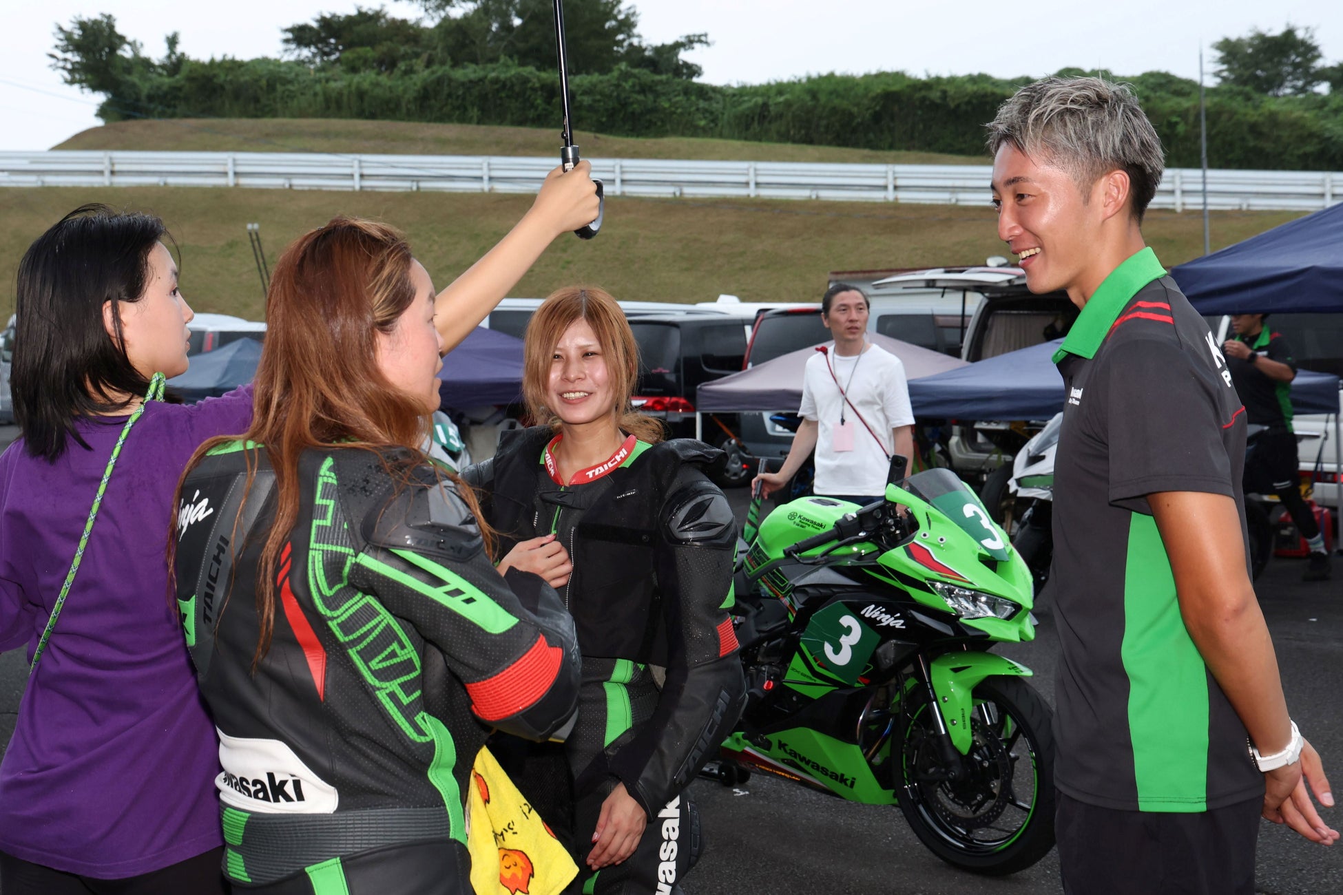 「Ninja Team Green Trial」とはサーキット初心者でもレースに必要な技術、知識を学べるプログラムの事です。今回の会場であるSPA直入では5月と7月の過去2回に渡って女性専用の「レーディスクラス」を設定した「Ninja Team Green Trial」を実施。サーキットデビューから「Ninja Team Green Cup」でのレースデビューまで段階的に挑戦できる環境を整えました。さらにレディースクラスでは「Kawasaki Plaza Racing Team」岩戸亮介選手が専属のサポートスタッフを担当。プロの目線でしっかりサポートしてくれます。