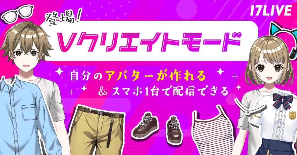17LIVE株式会社(東京都渋谷区、代表取締役:ジャン・ホンフイ、URL:https://jp.17.live/)が運営する日本最大級のライブ配信アプリ「17LIVE(イチナナ)」は、アプリ内でアバターを作成してそのままVライバーとしてライブ配信を行うことができる新機能『Vクリエイトモード』(略称:Vクリ)を導入しましたので、お知らせいたします。