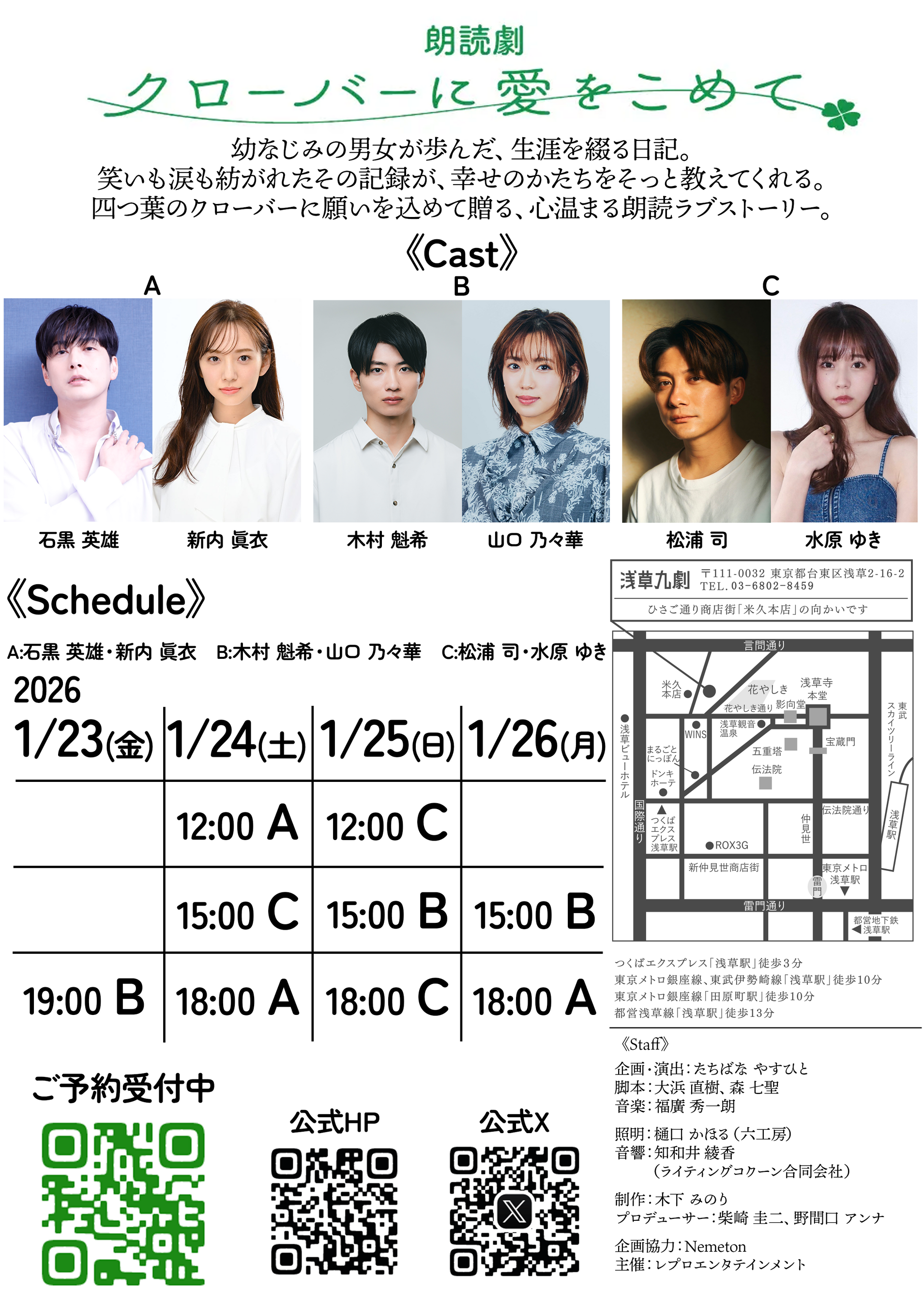 朗読劇『クローバーに愛をこめて』2026年1月に浅草九劇で上演決定‼