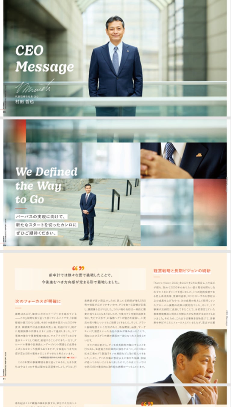 カンロは、2025年6月に「統合報告書 2025」(日本語版/英語版)を発行しました。本報告書では、2025年2月に策定した「中期経営計画2030」について、施策内容やビジョン達成に向けた思いを社員インタビューを中心とした構成でわかりやすく解説することに努めました。