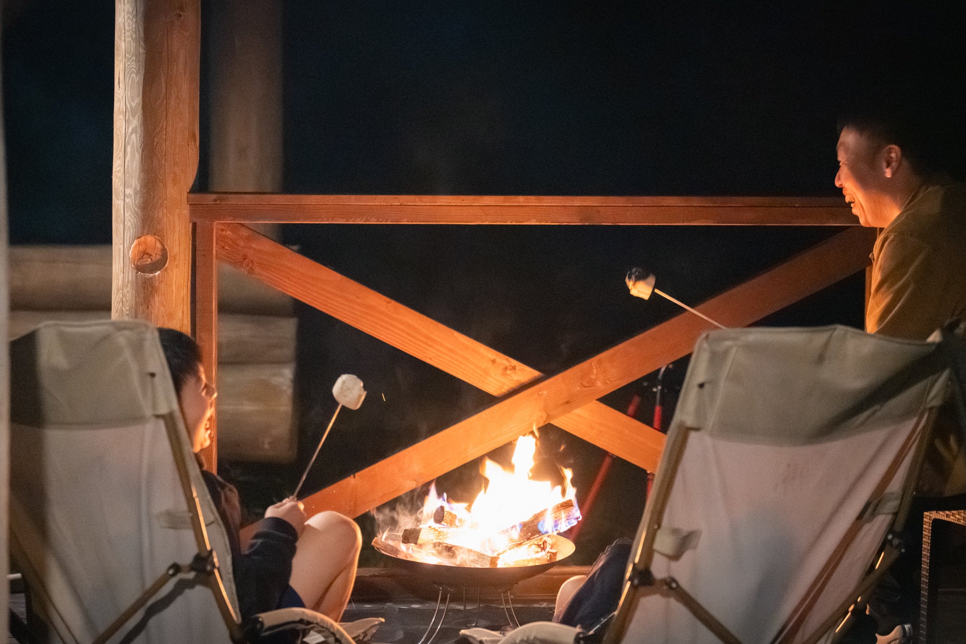 ・焚火を囲んで、スモアを片手に雨音に耳を傾ける