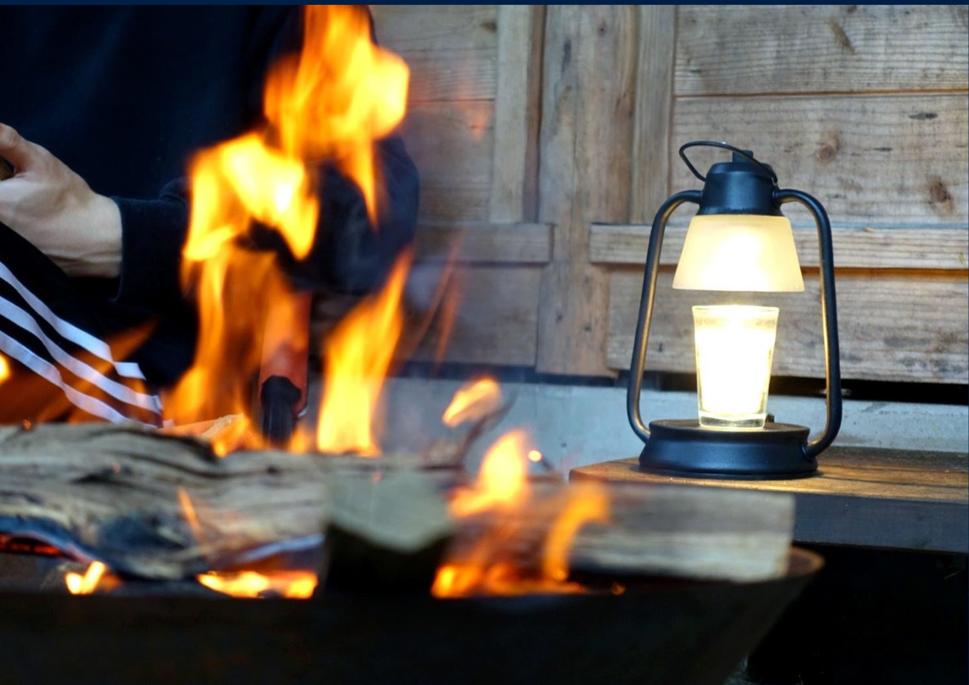 雨の音をBGMに、焚火のぬくもり、やさしいアロマの香りと灯りを楽しむ。