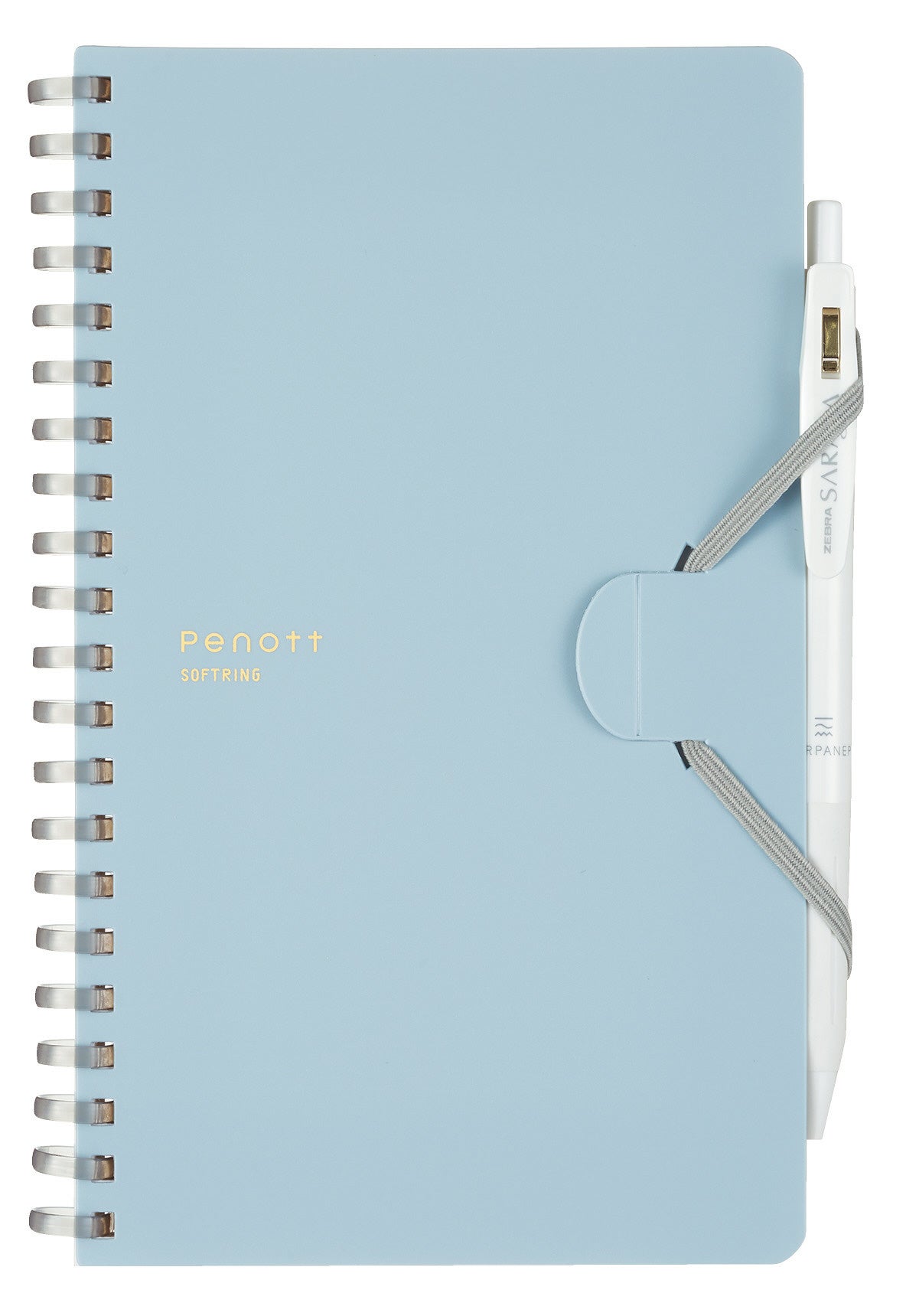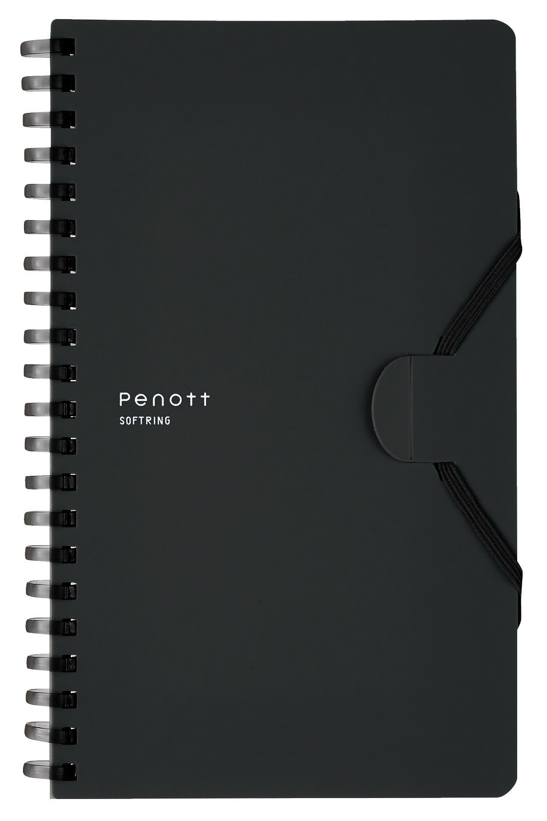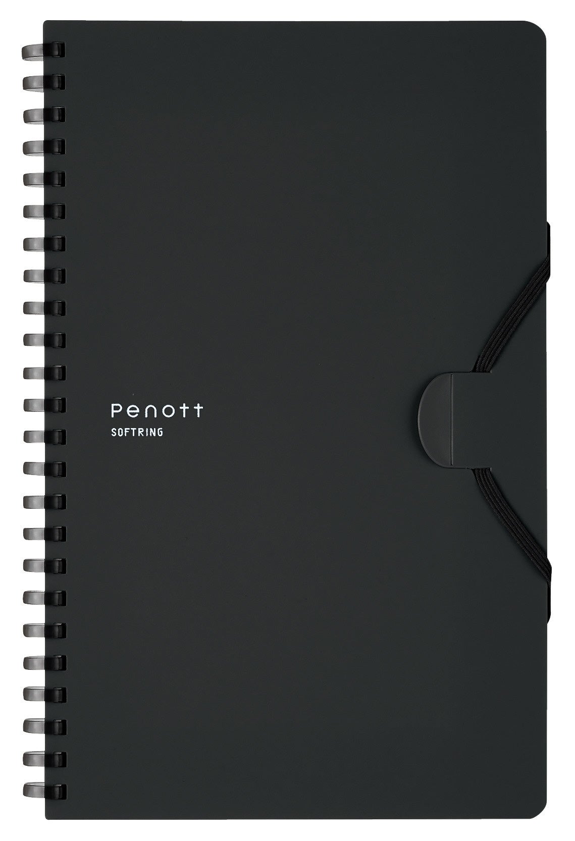 今回発売の「Penott(ペノット)」は、PEN(ペン)とNOTE(ノート)を組み合わせた造語を由来とし、名前のとおりペンとノートを一体にして持ち運べる新たな形を提案したノートです。多様なタイプの筆記具をしっかりホールドできるよう筆記具全体をゴムバンドで巻き込んで留められる新しい取付方法を採用しています。持ち運ぶ時はコンパクトに、使う時はPCの手前で折り返して省スペースに使えるスリムタイプ。リング部分は、手に当たっても痛くなりにくいやわらかなソフトリングになっています。