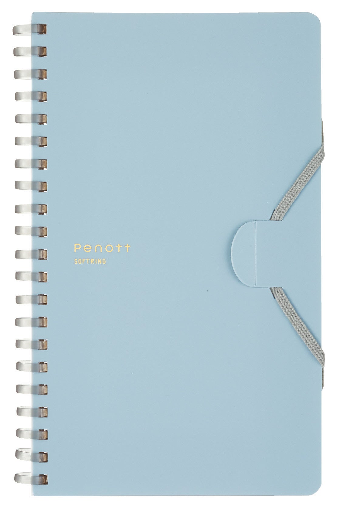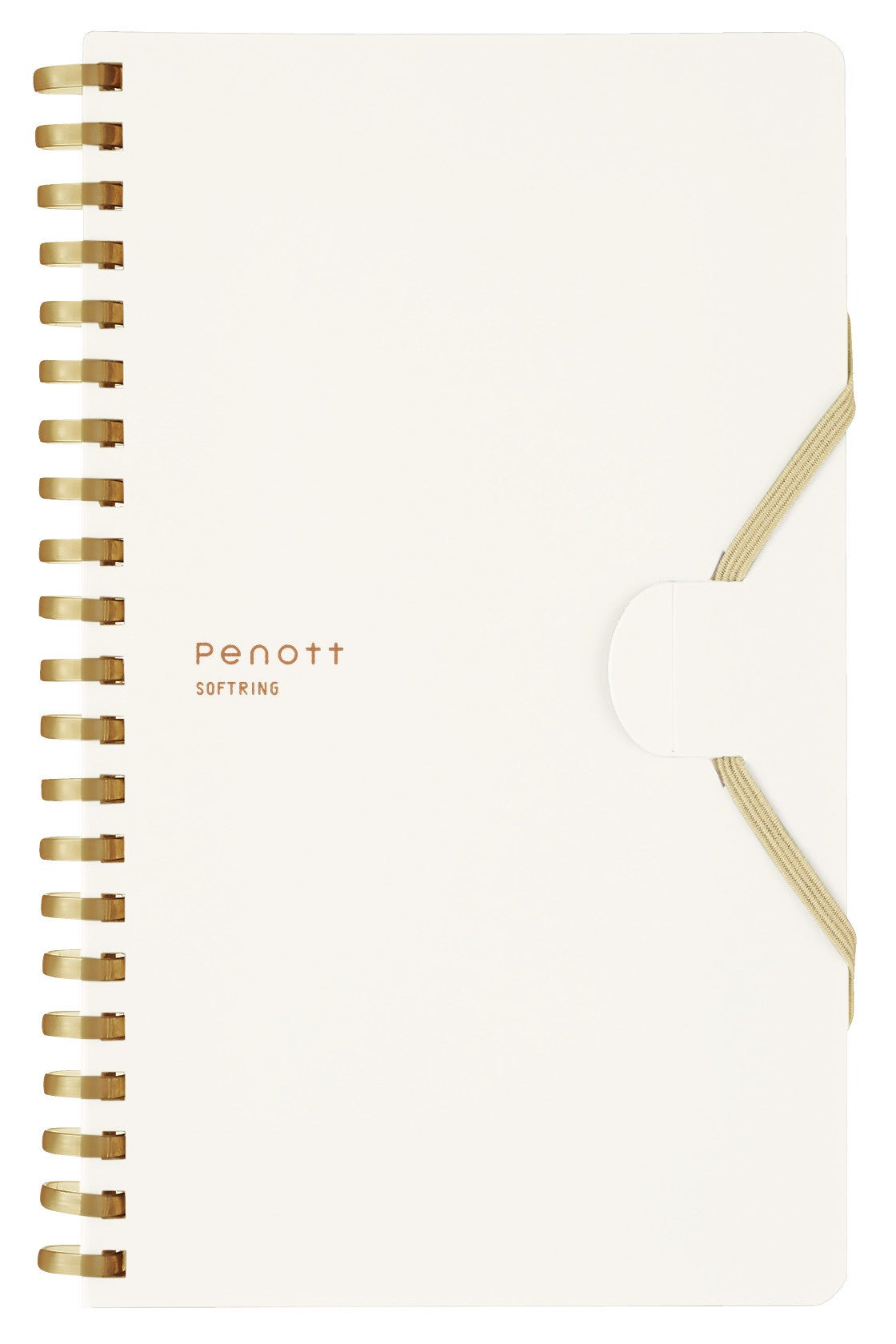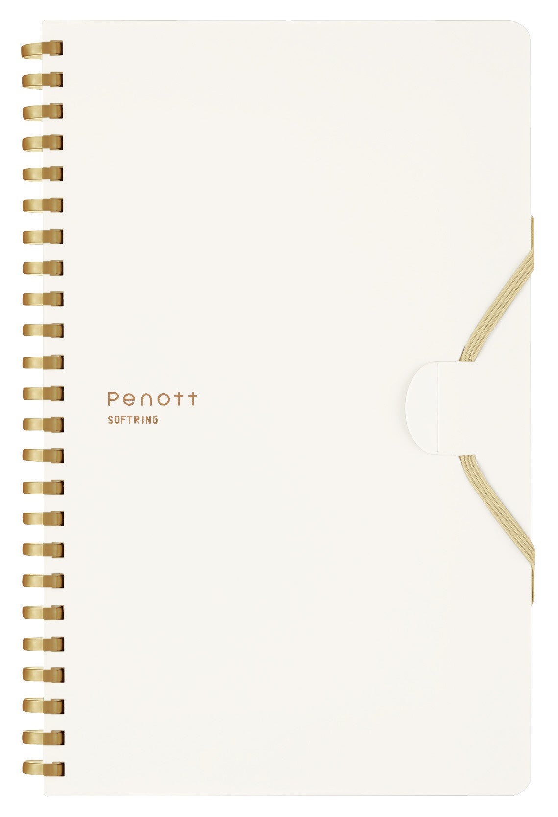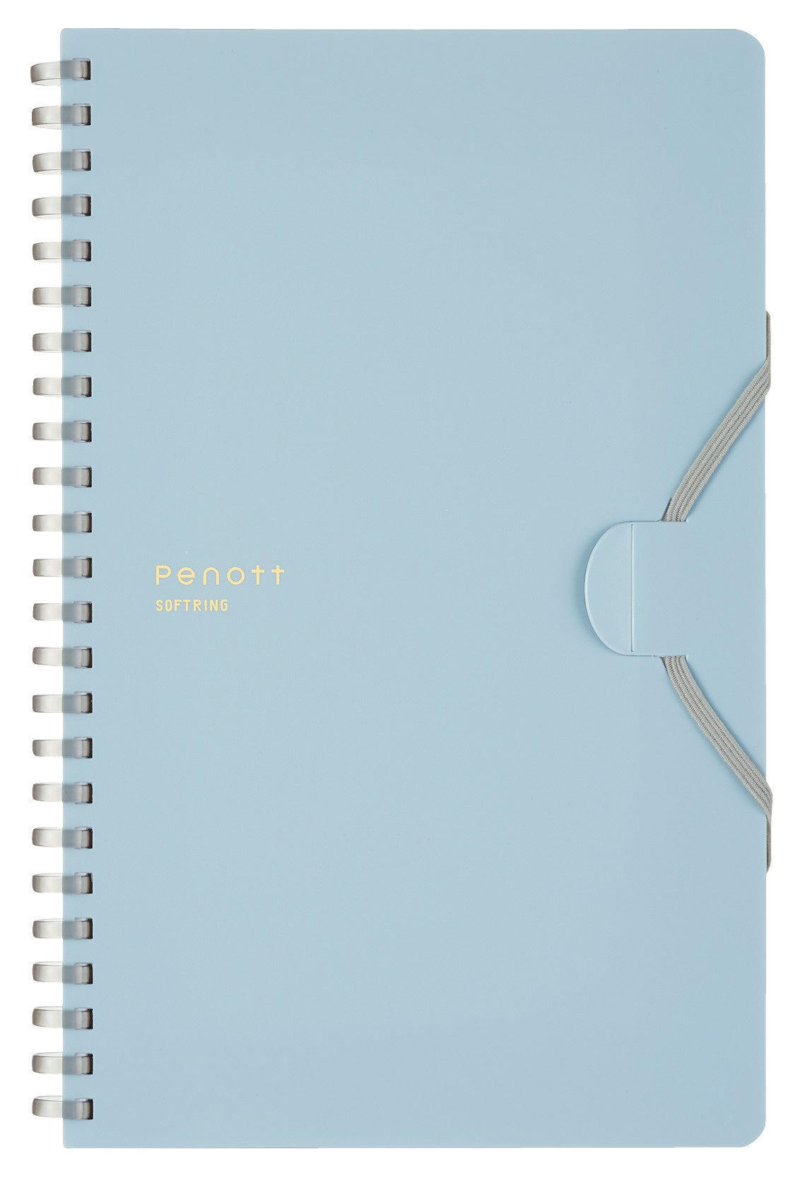 今回発売の「Penott(ペノット)」は、PEN(ペン)とNOTE(ノート)を組み合わせた造語を由来とし、名前のとおりペンとノートを一体にして持ち運べる新たな形を提案したノートです。多様なタイプの筆記具をしっかりホールドできるよう筆記具全体をゴムバンドで巻き込んで留められる新しい取付方法を採用しています。持ち運ぶ時はコンパクトに、使う時はPCの手前で折り返して省スペースに使えるスリムタイプ。リング部分は、手に当たっても痛くなりにくいやわらかなソフトリングになっています。