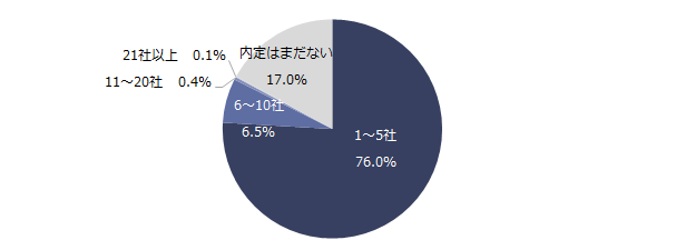 現在の内定企業数を伺うと、回答の最多は「1〜5社」(76.0%)でした。「内定はまだない」と回答した方は17.0%で、5月中旬時点で内定を取得している方は83.0%にのぼりました。