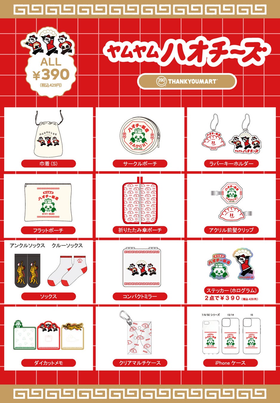 全品390円(税込429円)で人気デザイン「ヤムヤムハオチーズ」や「ハオチー飯店」の限定アイテムが登場!