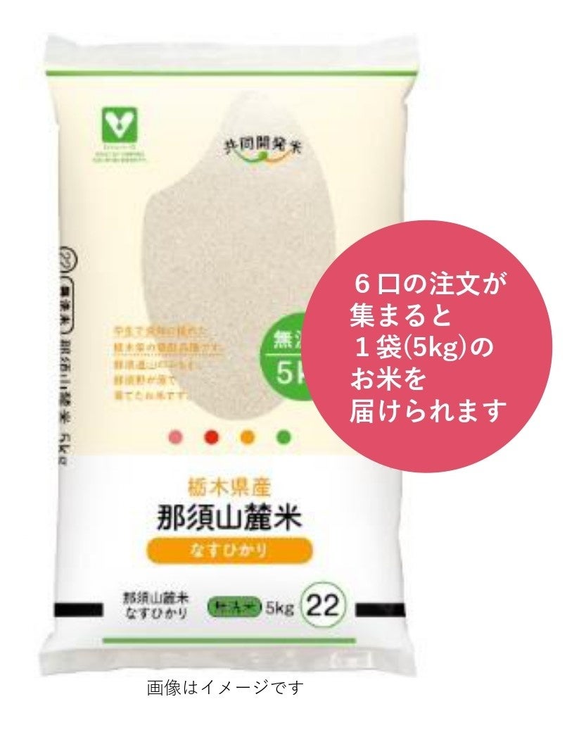 ・対象品目: 「おふくわけ米」 1口 約0.8Kg 484円(税込)、6口の注文で1袋(5Kg)のお米が届けられます