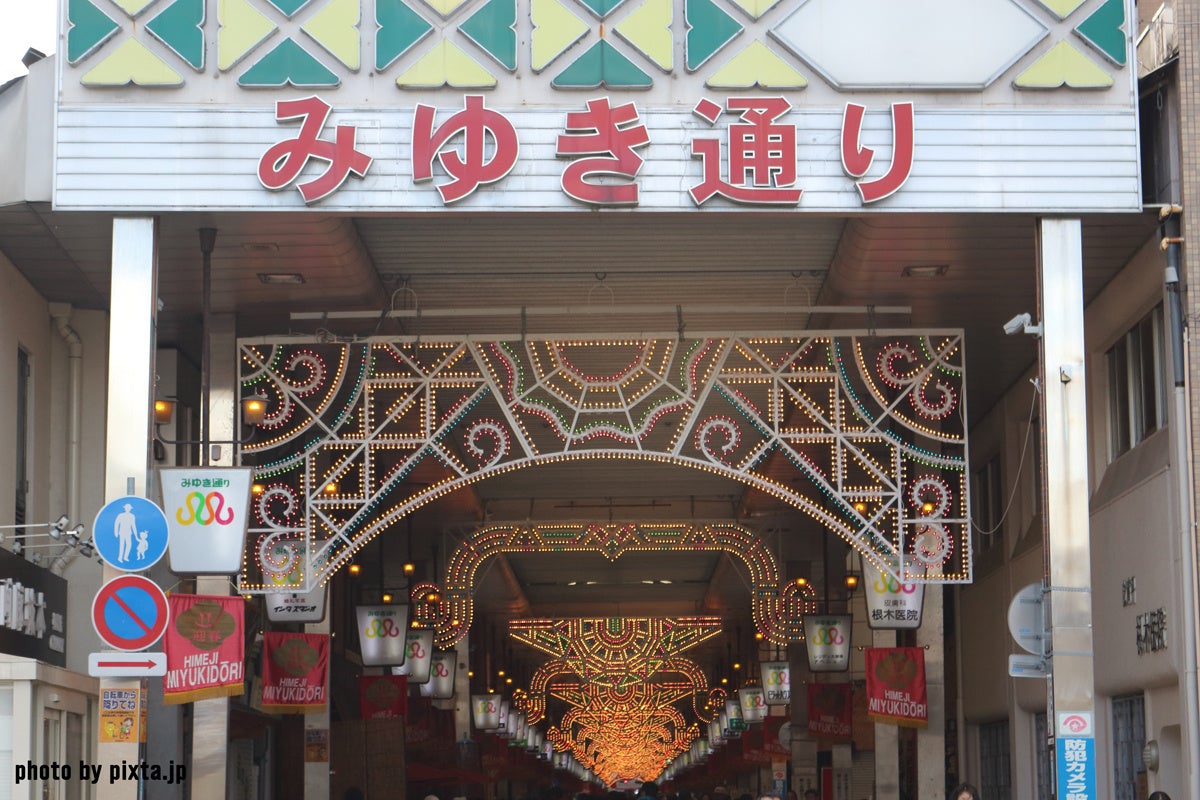 姫路城前・姫路市立動物園・播磨国総社・護国神社・好古園・姫路市立美術館・みゆき通商店街・手柄山 等