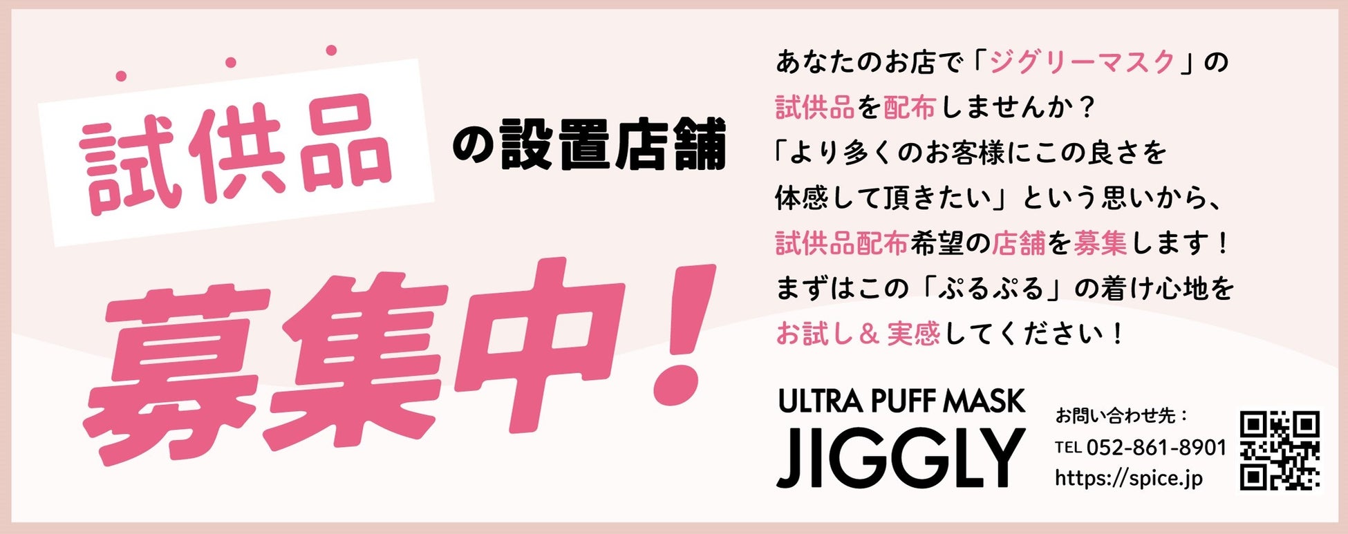 敏感肌ケアのJIGGLYマスクの試供品を設置してくださるお店を募集しています。