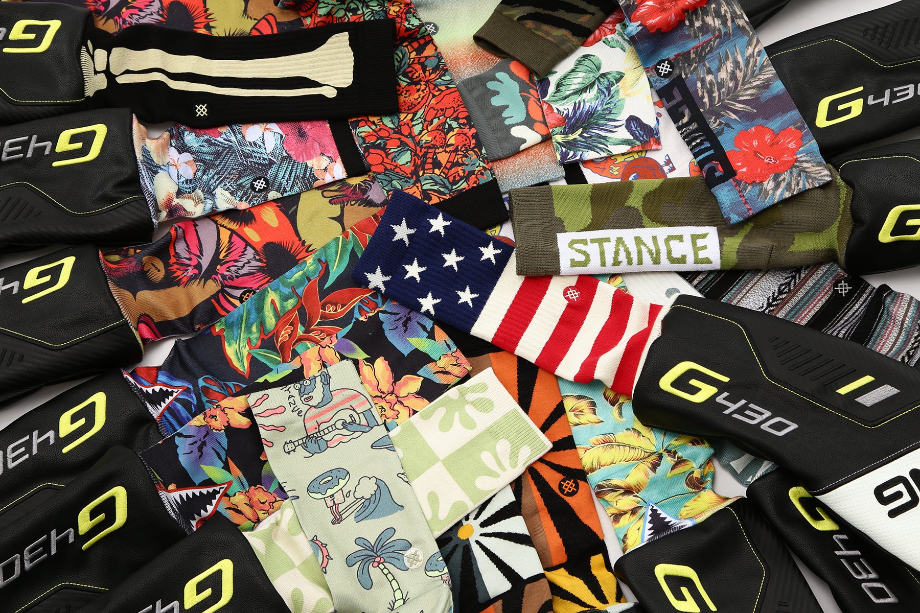 PING G430ヘッドカバーと世界中で人気を集めるソックスブランド‐ STANCE SOCKS - スタンス ソックスとのコラボレーションが実現!STANCEの魅せる華やかなソックスのヘッドカバーが誕生!20種類の鮮やかなカラー展開にて「ソックスみたいなヘッドカバー」を作っちゃいました。お好みのアイテムをぜひ見つけてください。