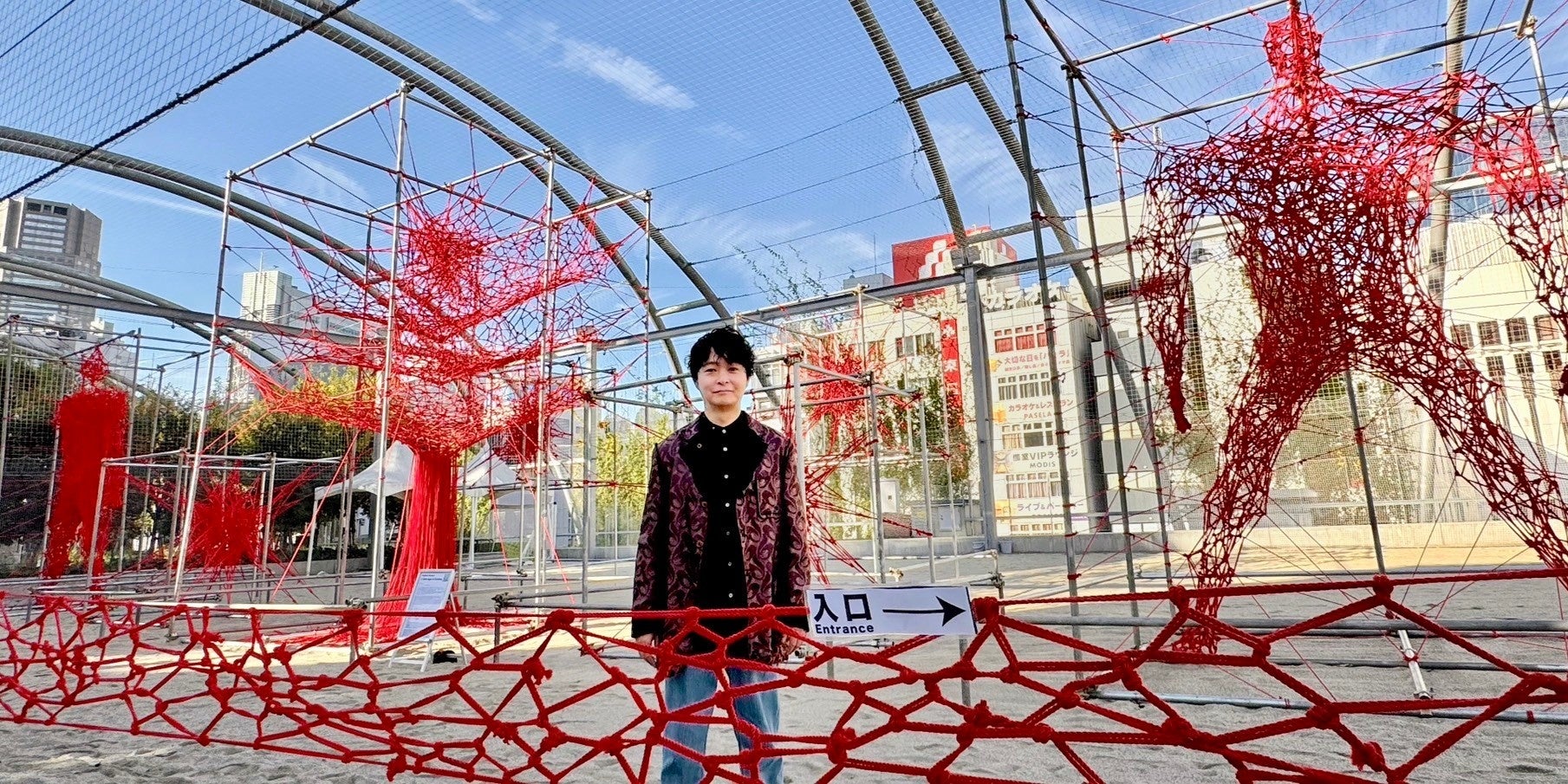 さらに渋谷芸術祭で、渋谷宮下公園に6m高、21m幅、超巨大ロープアートを実現させた。