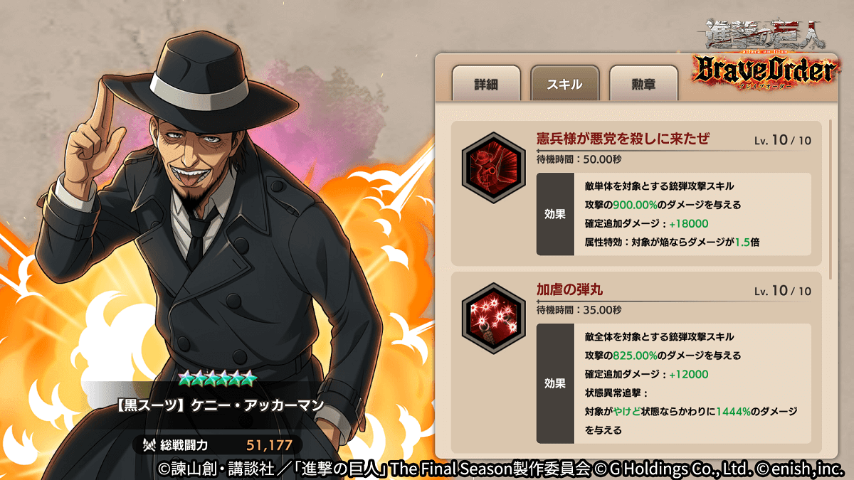 ・【黒スーツ】ケニー・アッカーマン(【焔】属性)/ 前衛 / 攻撃型
