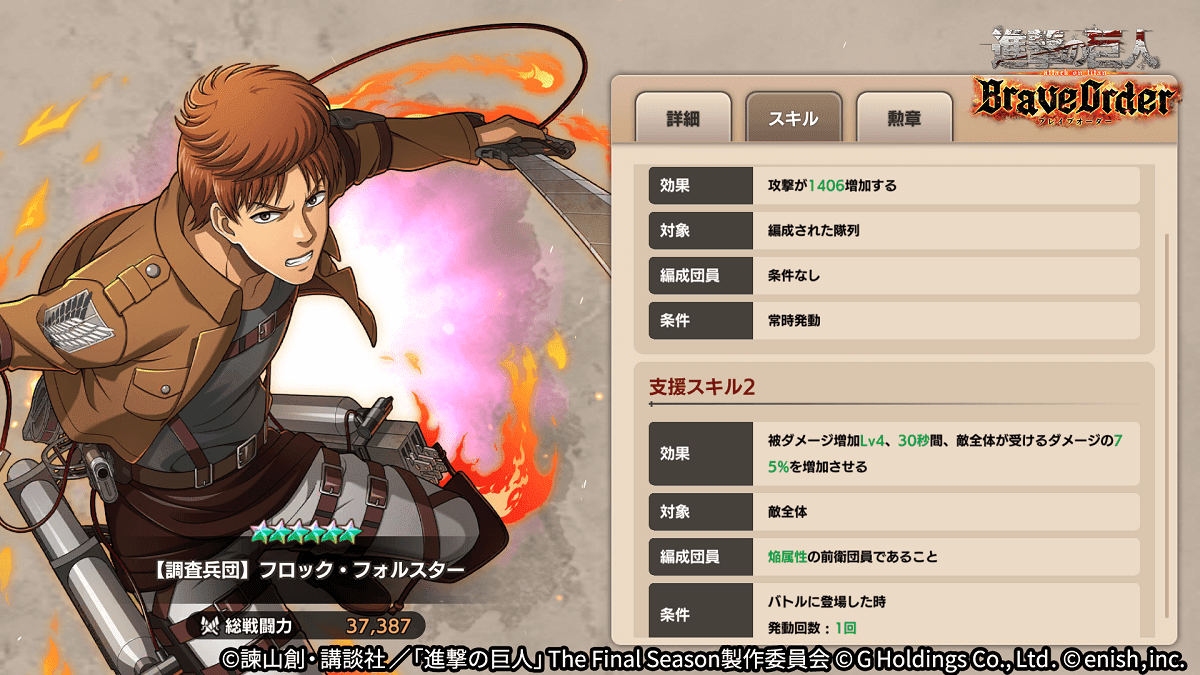 ・【調査兵団】フロック・フォルスター(【焔】属性)/後衛/支援型